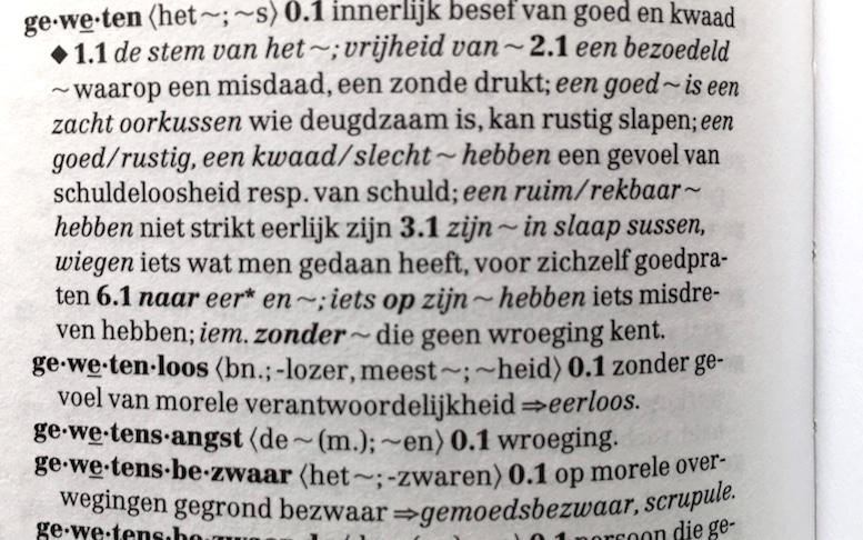 In het Engels zijn deze twee woorden ( conscience en consciousness) heel dicht bij elkaar ; de eerste heeft een morele connotatie, de tweede is een cognitieve,